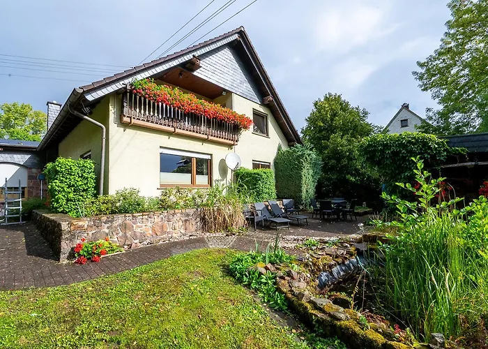 Wenn Sie einen frühen Flug aus Allenbach haben, liegt die 155 m^2 große Ferienwohnung Haus Zwischen den Wäldern 35 km vom Flughafen Frankfurt-Hahn entfernt. Wandern, Skifahren und Angeln sorgen einen abwechslungsreichen Urlaub der Gäste.